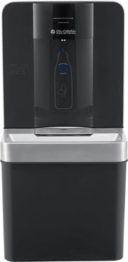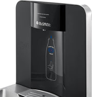 A LED filter status indicator alerts users when a filter change is needed, and a digital bottle counter displays the number of plastic bottles saved from waste, promoting sustainability.